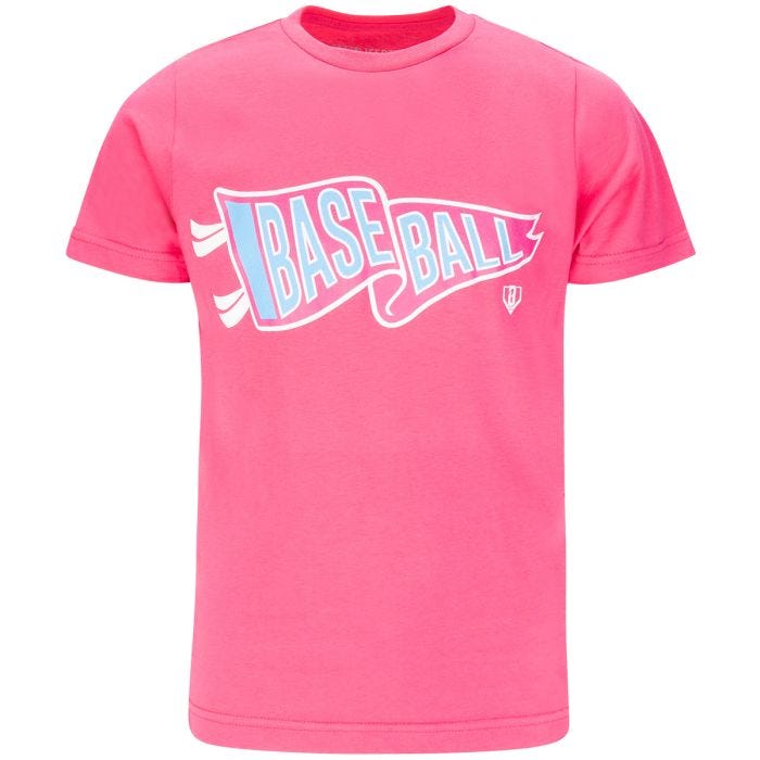 Introducing the Baseball Lifestyle Cotton Candy Pink Pennant Tee, designed especially for young athletes with a taste for style. Crafted in a delightful cotton candy pink hue, this tee is as sweet as it gets. Adorned with a classic pennant graphic proudly showcasing the word "baseball" on the front, it's a nod to the timeless spirit of the game. Made with soft, breathable fabric, it ensures all-day comfort whether they're on the diamond or hanging out with friends. Let your little one sport their love for baseball in style with the Baseball Lifestyle Cotton Candy Pink Pennant Tee.