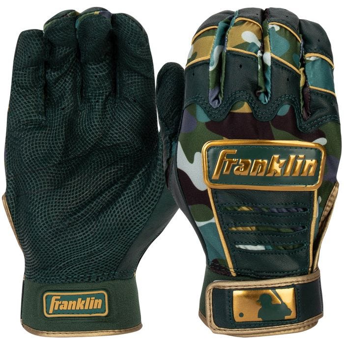 Franklin has joined Major League Baseball in honoring our troops by supplying pro athletes with special edition camouflage batting gloves. Using the color schemes of our nation’s armed forces along with a golden chrome handback and wristband stars, these gloves were made to shine and honor the men and women who keep us safe.